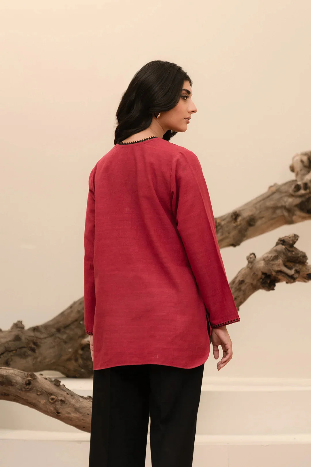 Trendy khaddar top with self embroidery, perfect fit for winter casual wear.