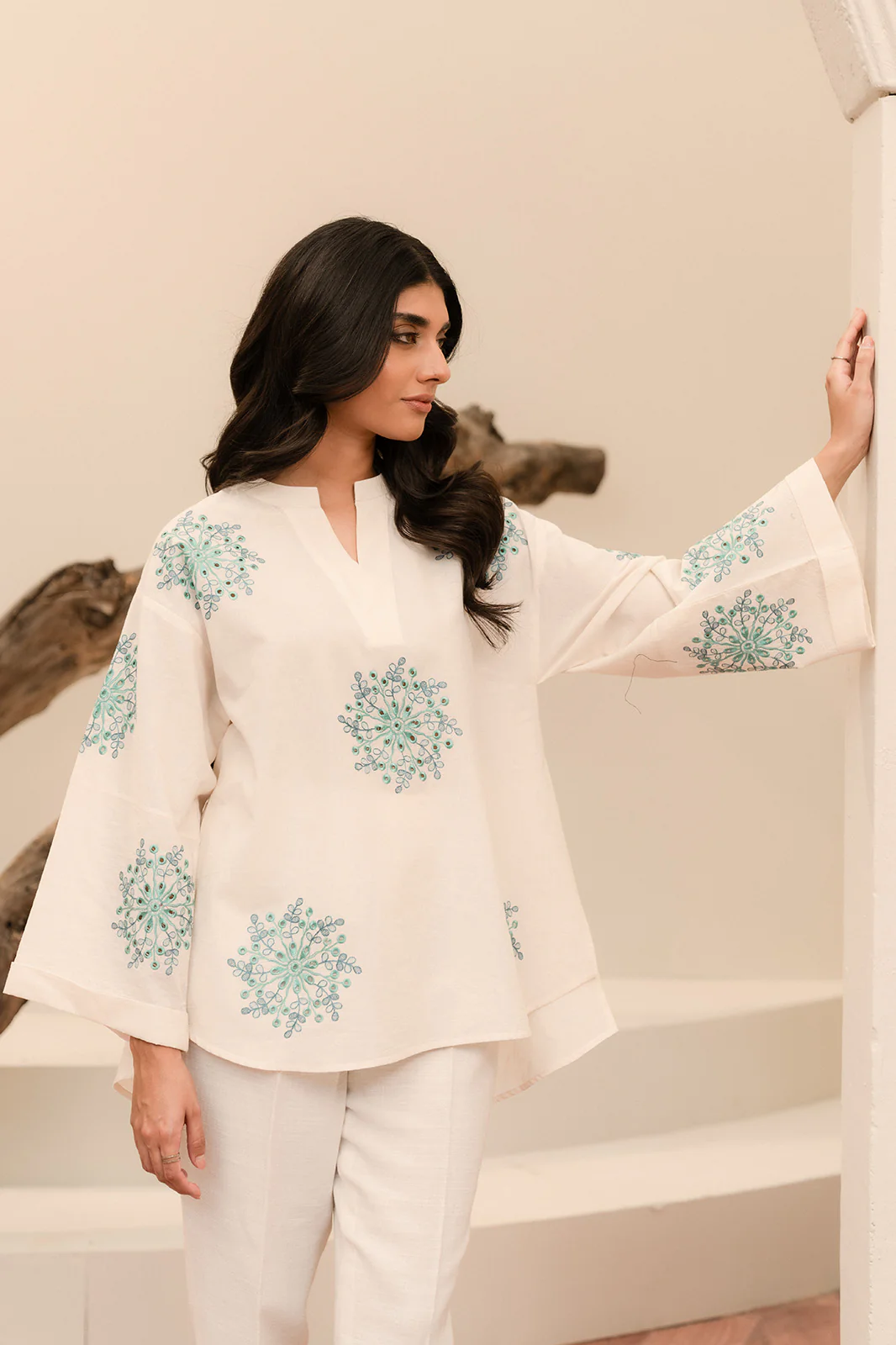 Stylish solid khaddar top adorned with delicate embroidery, pair it with a classy pants.